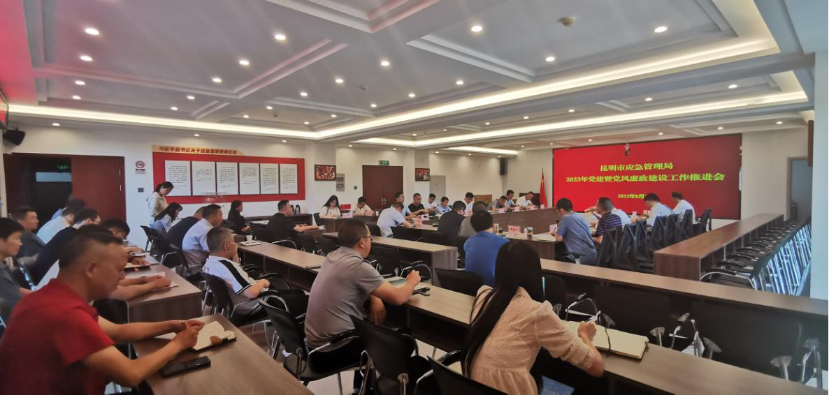 2023年8月15日,昆明市应急管理局党委召开2023年党建暨党风廉政建设工作推进会,会议由局党委委员、政治部主任、机关党委书记李光主持。会议听取了班子成员落实党风廉政建设“一岗双责”情况的汇报,支部书记党建工作开展情况的汇报,党委书记、局长周晓贤对下一阶段党建、党风廉政建设和反腐败工作进行了安排部署。